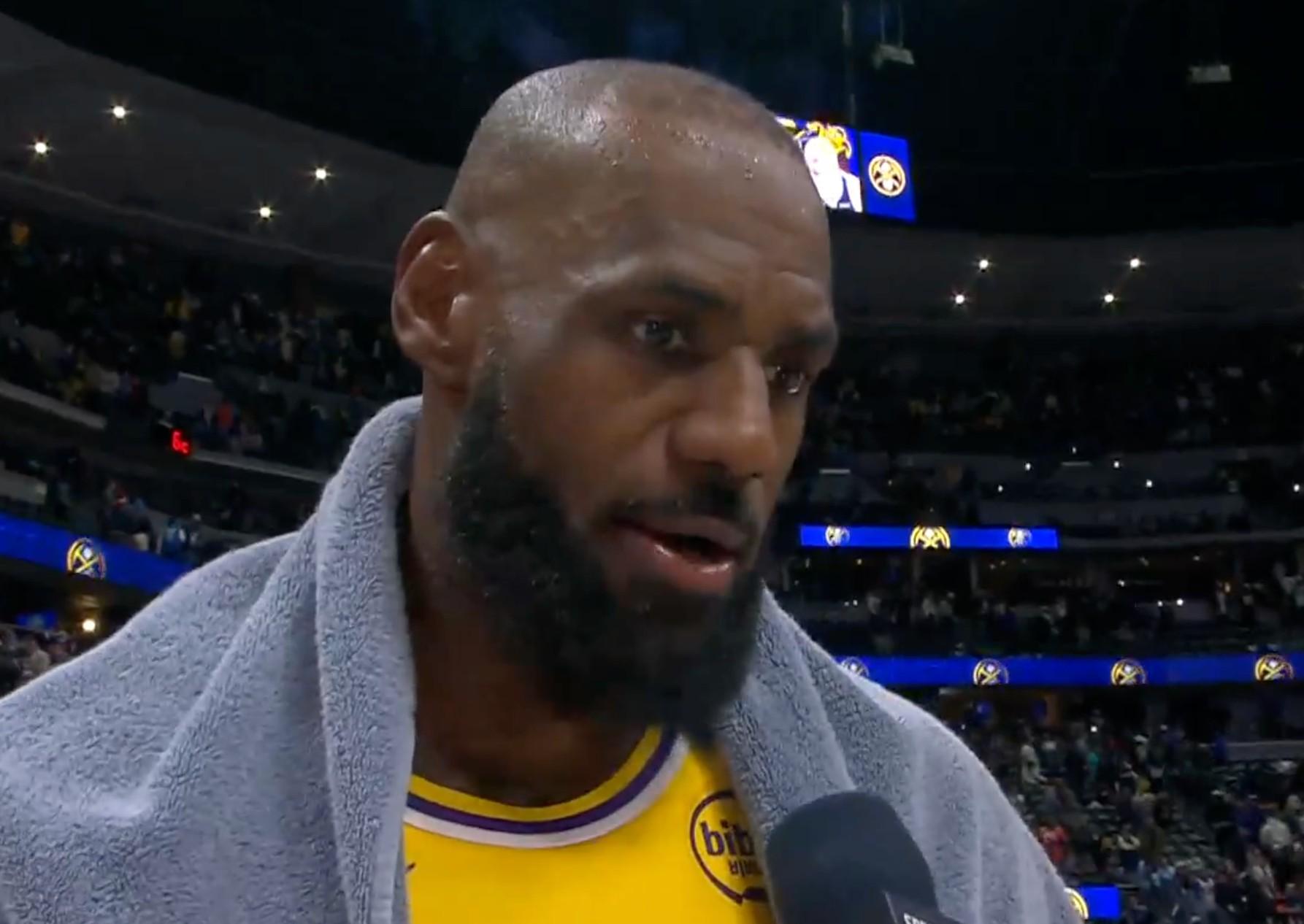 北京时间1月21日,NBA常规赛湖人客场115-107战胜掘金。赛后,湖人队球员勒布朗-詹姆斯接受了媒体的采访。